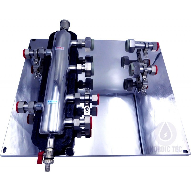 Anuloid Hydraulicky Vyrovnávač tlaku Nordic Tec na montážní desce pro 3 okruhy 1"