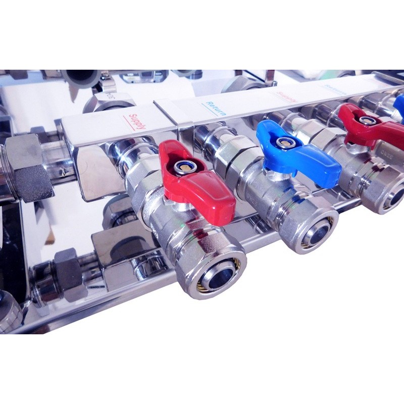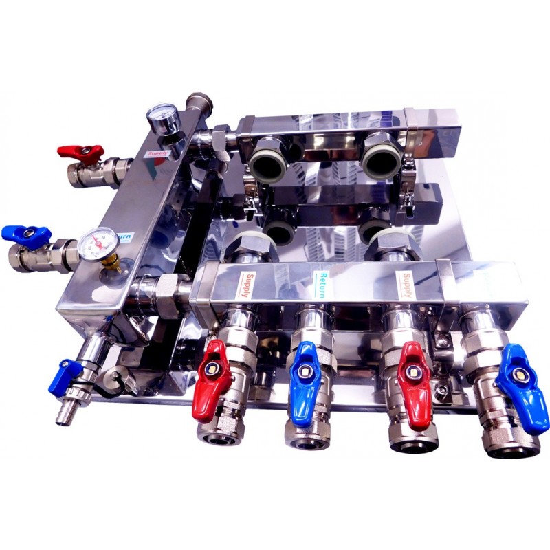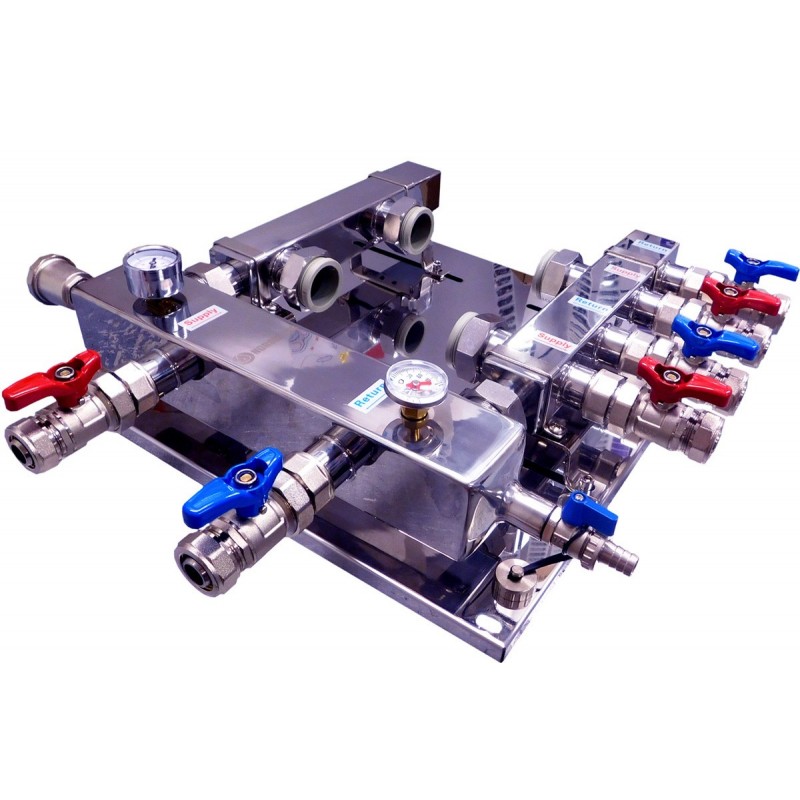 Hydraulická sada Anuloidu - vyrovnávače s rozvaděčem oběhů funguje lépe než tradiční vyrovnávač tlaku díky tomu, že rozdělovače zvyšují spojovací funkci a vytvářejí dodatečnou neutrální zónu z pohledu oběhových čerpadel.
