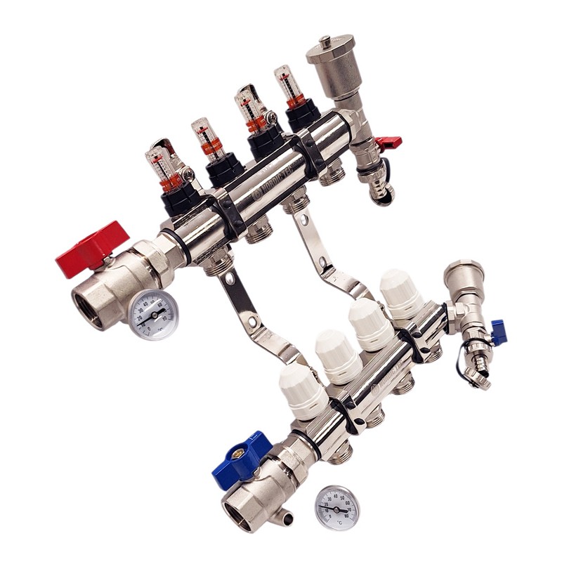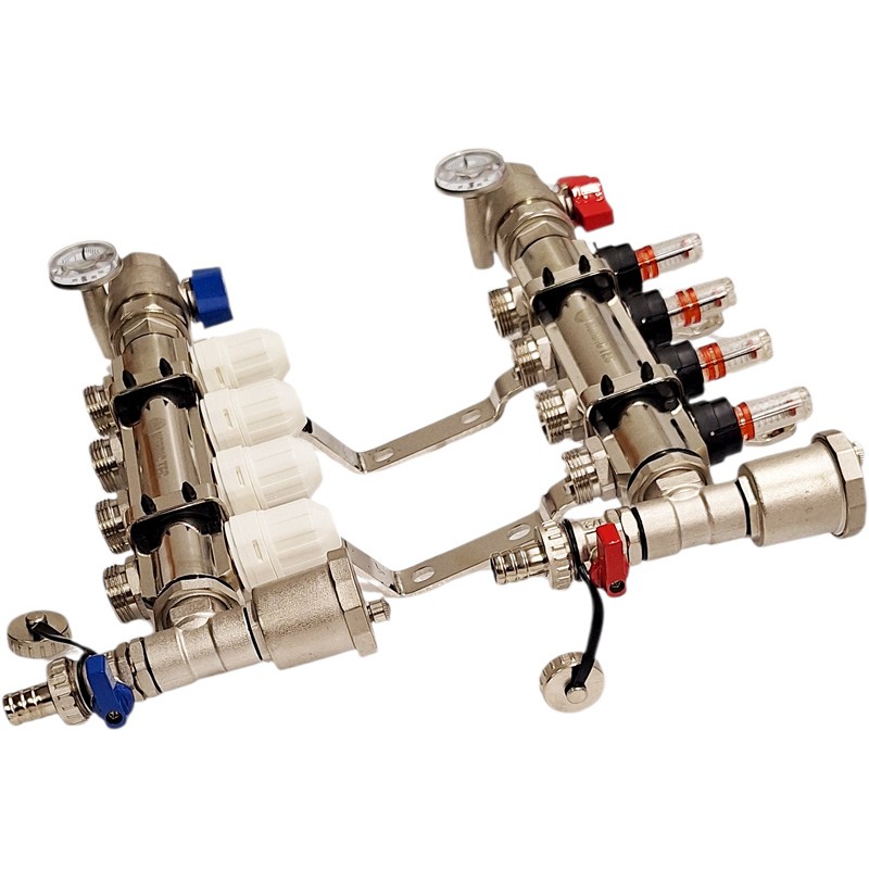 Tento rozdělovač podlahového vytápění má 4 topné okruhy, co znamená, že může spojit 4 nezávislé topné sekce. Může být použit nejen s podlahovým vytápěním, ale také s tradičními radiátory a je dobrým výběrem pro obě možnosti. Pokud 4 topné okruhy nejsou pro vaši instalaci dostatečné, v našem obchodě naleznete větší rozdělovače stejného typu, vybavené stejnými příslušenstvími.