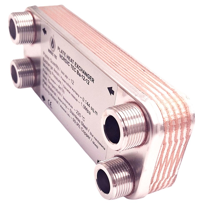 Nejmenší deskový výměník tepla v katalogu výrobce Nordic Tec. Malý tepelný výměník sloužící k připojení dalších topných nebo chladicích obvodů - k již existujícím instalacím - nebo k obsluze malých systémů. Zařízení má výměnnou plochu o rozloze 0,14m2 a připojení 3/4". Tento výměník tepla lze volitelně zakoupit s tepelnou izolací a s montážní sadou určenou k upevnění zařízení na stěnu. Jedná se o jeden z nejmenších výměníků tepla na trhu - kvůli omezeným rozměrům není určen k obsluze celého ústředního topení, ale spíše k obsluze jeho částí.