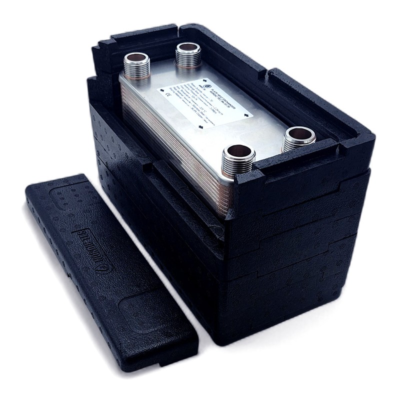 Deskový výměník tepla 70 desek - o výkonu 150 kW pro tepelná čerpadla typu monoblok / split (voda/voda nebo voda/glykol), ale také pro tradiční zdroje tepla, jako jsou velké kotle na vytápění a ohřev vody.