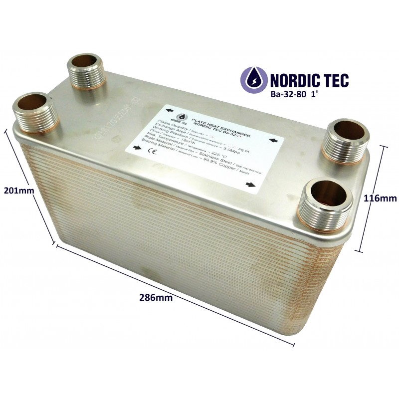 Výměník tepla pro provoz tepelných čerpadel - Nordic Tec Ba-32-80 - připojení 1 "