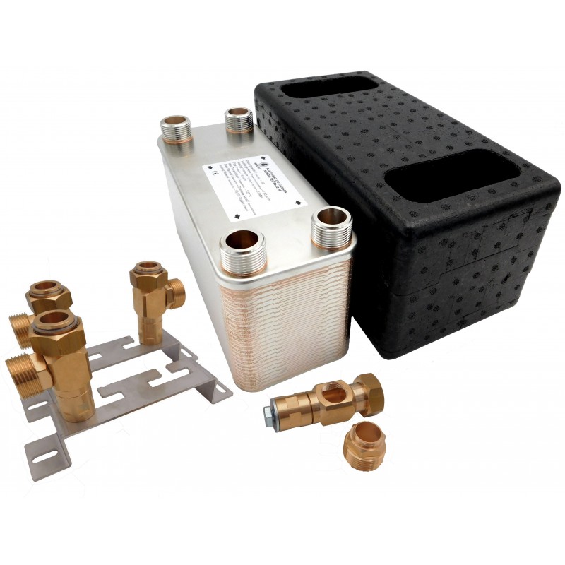Volitelně je dostupný výměník tepla s 80 deskami s tepelnou izolací a stěnovými držáky vybavenými šrouby.