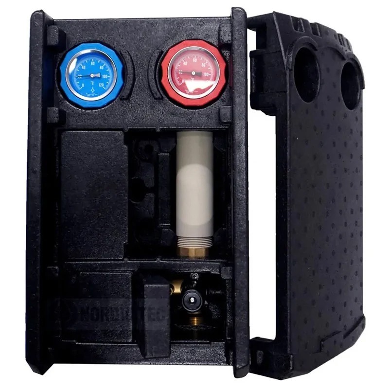 Modulární topný systém – Čerpadlová skupina pro podlahové vytápění Nordic Tec řady GPN s třícestným ventilem je určena pro rodinné a řadové domy a šetří čas a pracnost při instalaci. Všechny čerpadlové skupiny jsou předmontovány a utěsněny, takže je lze instalovat přímo – odpadají náročné a časově náročné práce na místě. Kompaktní konstrukce šetří instalační prostor. Vysoce kvalitní EPP izolace snižuje tepelné ztráty. Navíc má čerpadlová skupina moderní a estetický design při plné funkčnosti v rámci topného systému.